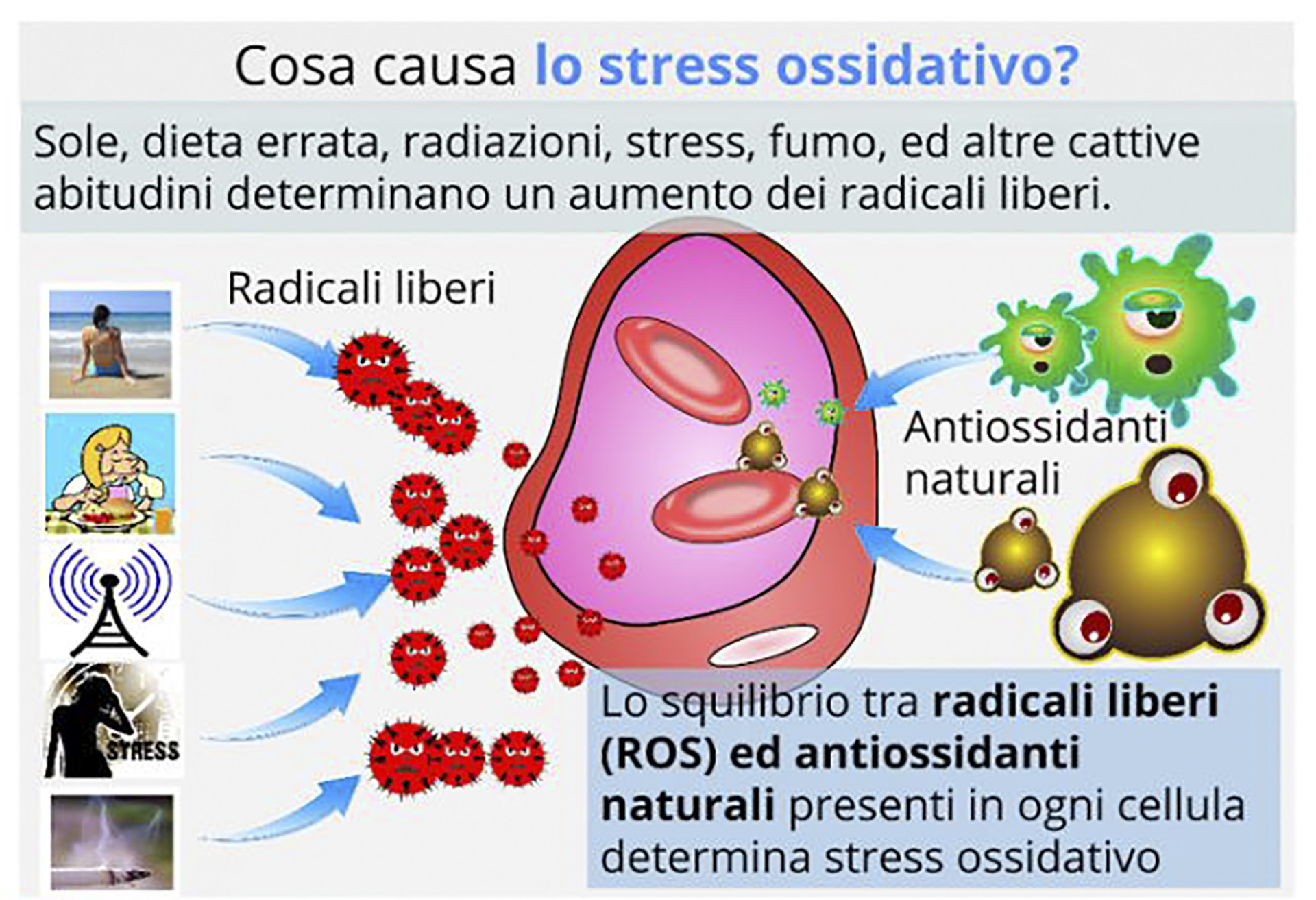 Se il nostro corpo non riesce a bilanciare questa produzione con un’adeguata protezione, si verifica il danno da stress ossidativo, con conseguenti danni cellulari e invecchiamento precoce, nonché un aumento del rischio di malattie croniche come il diabete, le malattie cardiovascolari e i tumori.